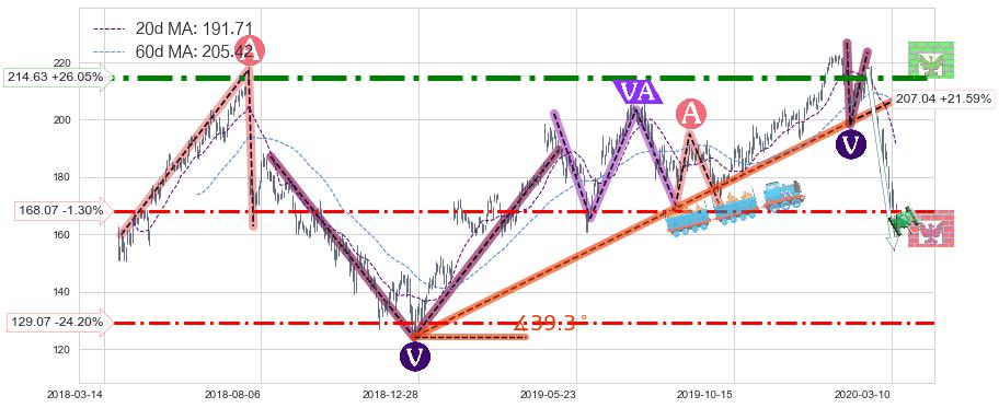 ♘ 阻力价格位214.63,可信任强度87.97%,距离最后交易2020-03-13形成的收盘价格170.28相差 +26.05%