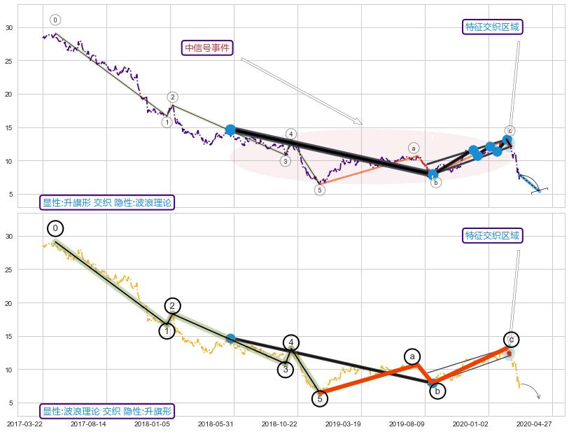 ➢ 升旗形属【中级别信号事件】波浪理论属【长级别信号事件】中长周期组合信号事件,中长事件长度比62.34%