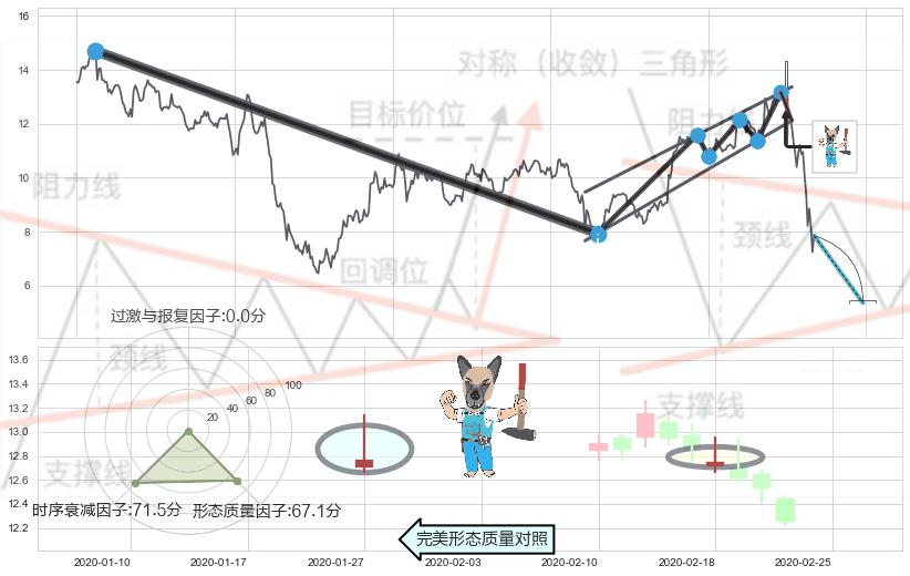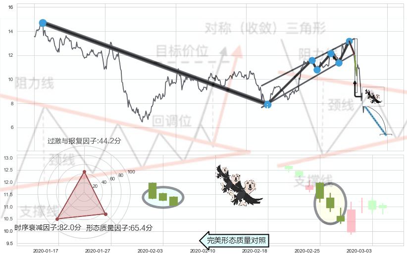➢ 下降【对称】三角形整理综合量化分数: 42.55 【偏空】