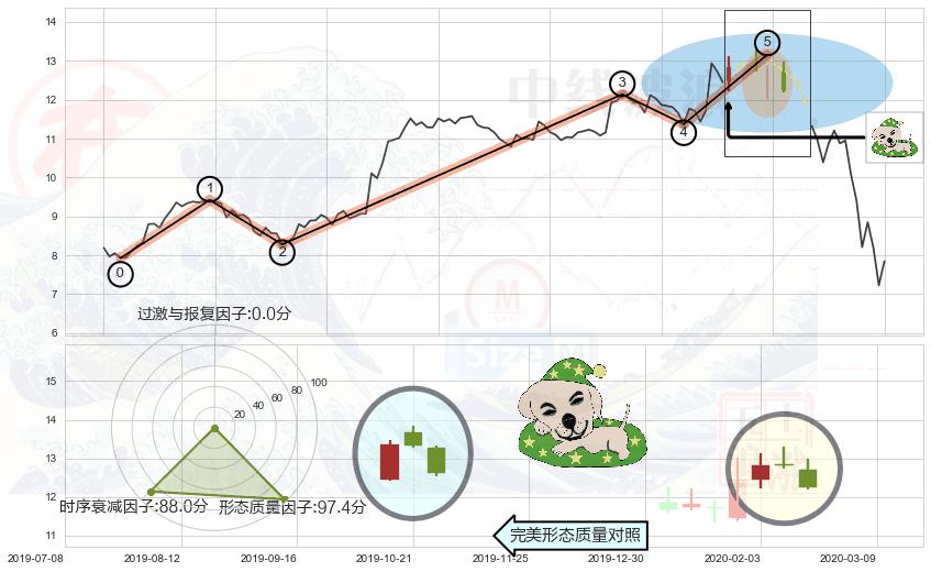 ➢ 🕰 价格走势在2020-03-04至2020-03-05期间形成吊颈线(上吊线),残存影响值:-3.08