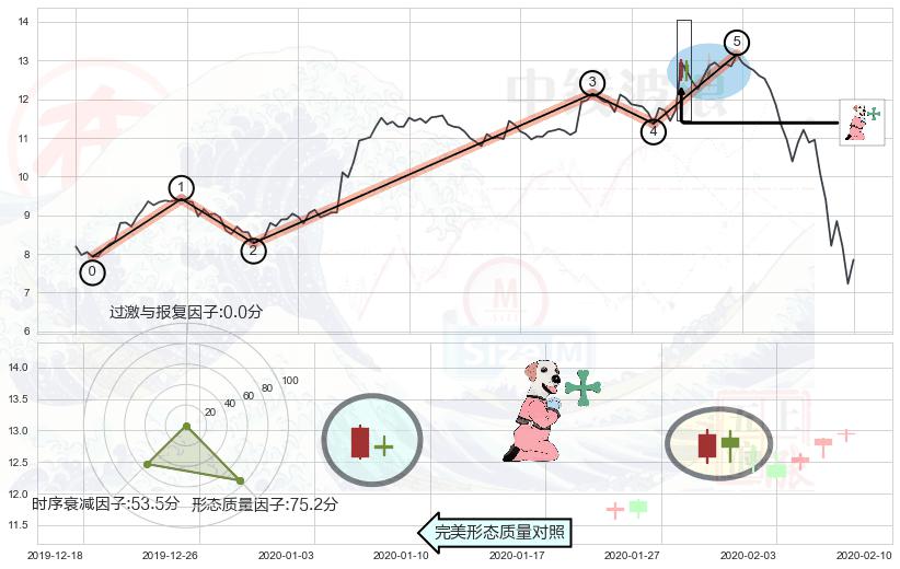 ➢ 🕰 价格走势在2020-02-20至2020-02-20期间形成单针探底(定海神针),残存影响值:2.51