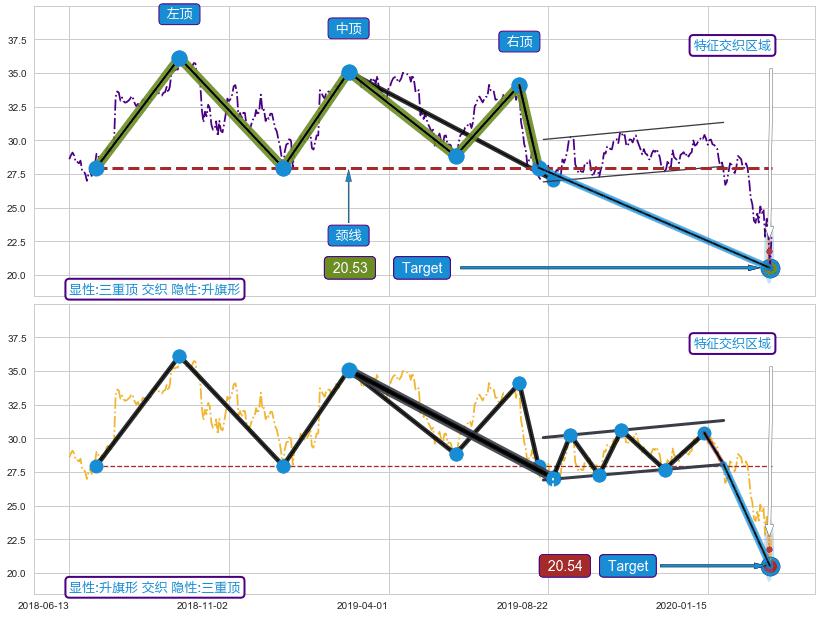 ➣ 【已确认突破】三重顶 起点:2018-06-28,突破点:2019-08-14,形态共284交易日