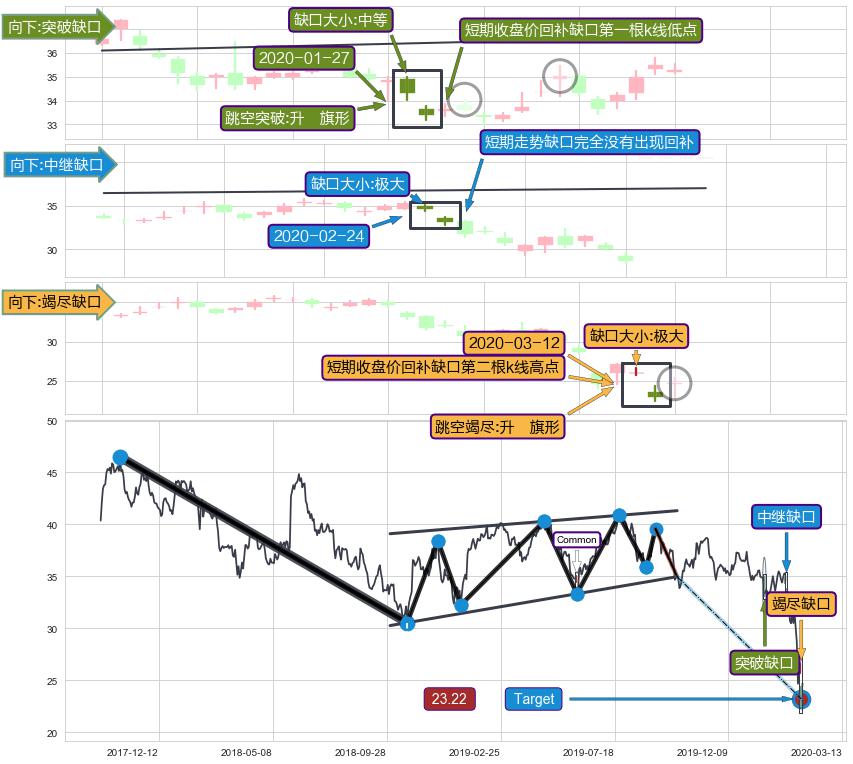 ➢ 2020-03-12形成:向下跳空【竭尽】缺口