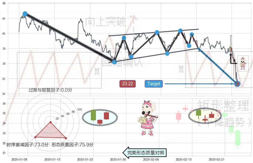 ➢ 【多方力量耗尽】已在2020-02-25突破矩形提供的【支撑】颈线 32.25 →箱形震荡盘整结束