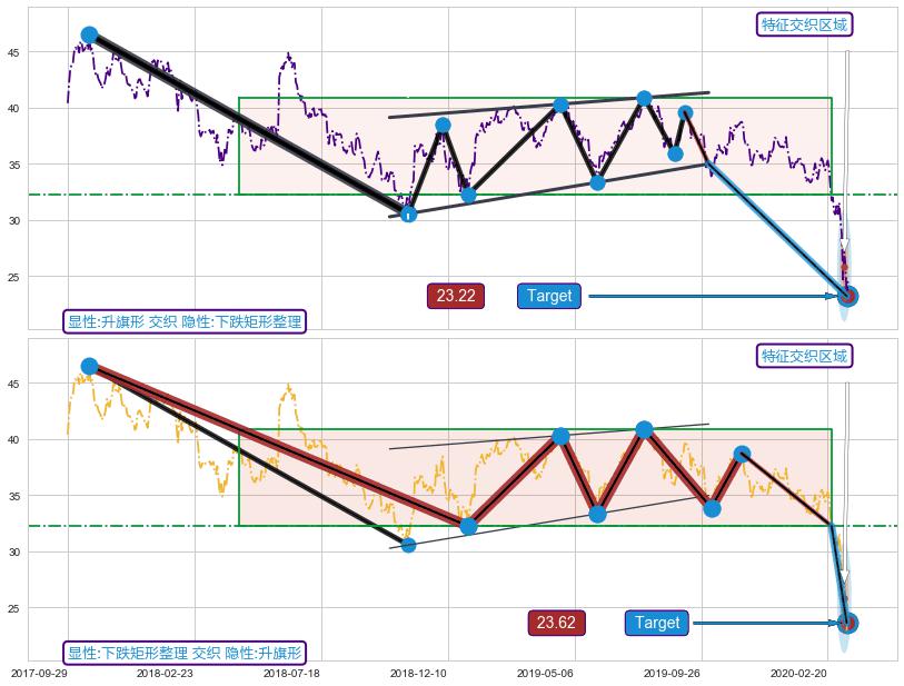 ➢ 下跌矩形整理:下跌目标target已达成:猜想强支撑位临近,预期反弹上涨(均值回复)
