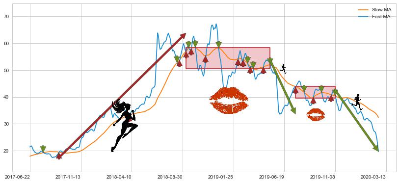 2019-11-08至2020-03-13 慢线与快线呈空头排列, 慢线与快线接触少,无缠绕