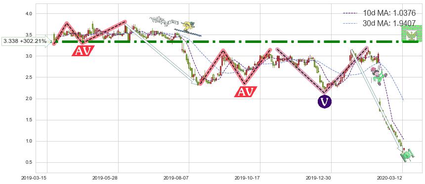 ♘ 阻力价格位3.338,可信任强度98.85%,距离最后交易2020-03-13形成的收盘价格0.8300相差 +302.21%