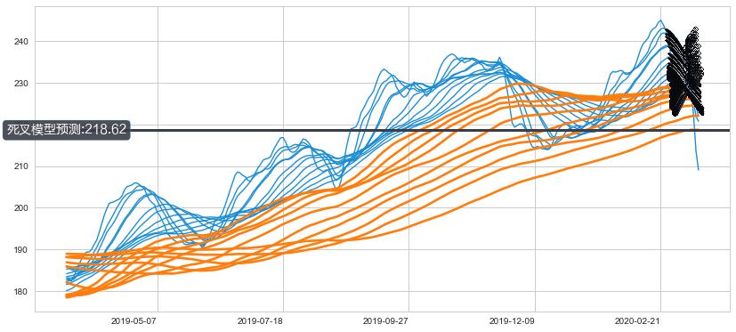 📉 多条均线基于【死叉历史模型】预测最低波谷价格的平均值: 218.62