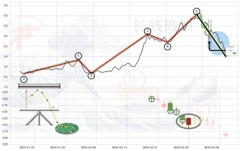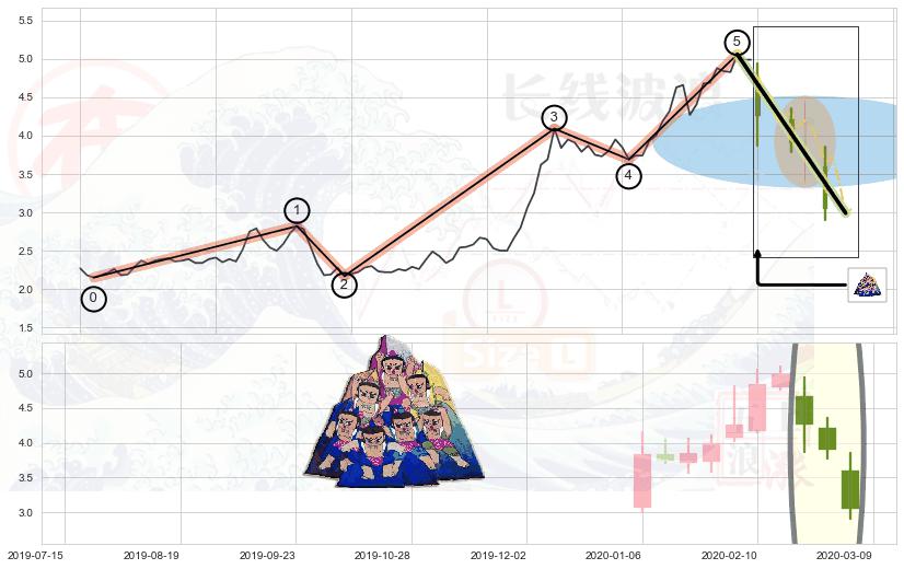 ➣ 循环浪继续向上【平均值】位置(2020-09-28, 5.96),匹配聚类样本比例55.36%, 可能性概率28.14%