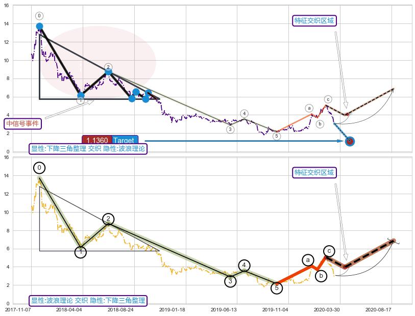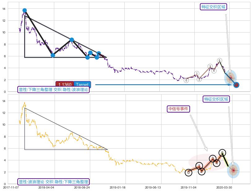 ➢ 波浪理论属【中级别信号事件】下降三角整理属【长级别信号事件】中长周期组合信号事件,中长事件长度比49.34%