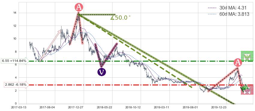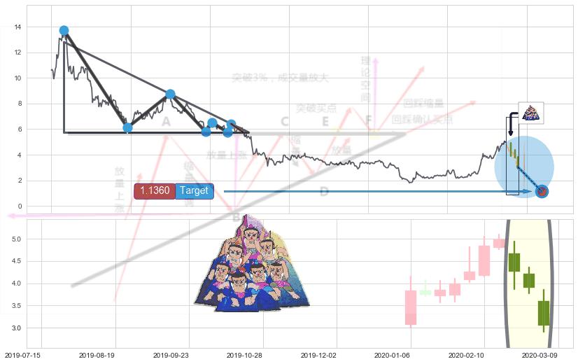 ♘ 支撑价格位2.862,可信任强度69.93%,距离最后交易2020-03-13形成的收盘价格3.050相差 -6.18%