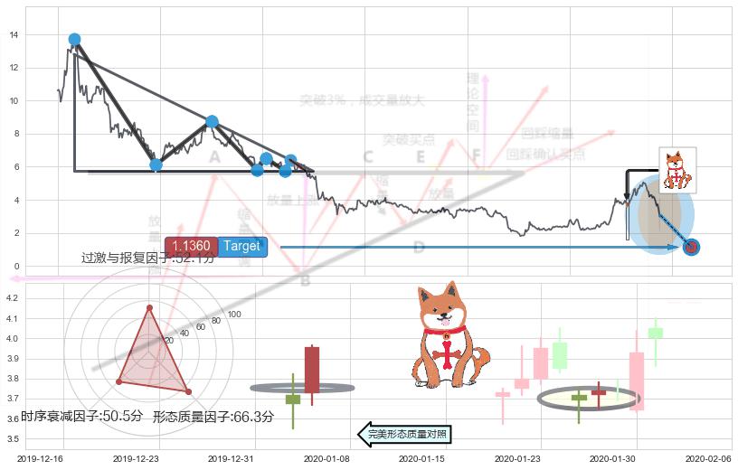 ➢ 早晨之星(黎明之星) 🔜 下降三角整理临近target支撑拐点上涨 综合量化分数:51.34 【中性】