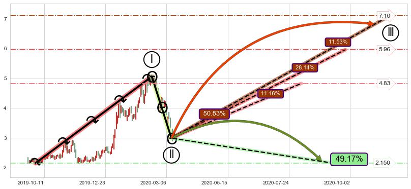 ➢ 循环浪继续向上【最低】位置(2020-08-07, 4.83),匹配聚类样本比例21.95%, 可能性概率11.16%