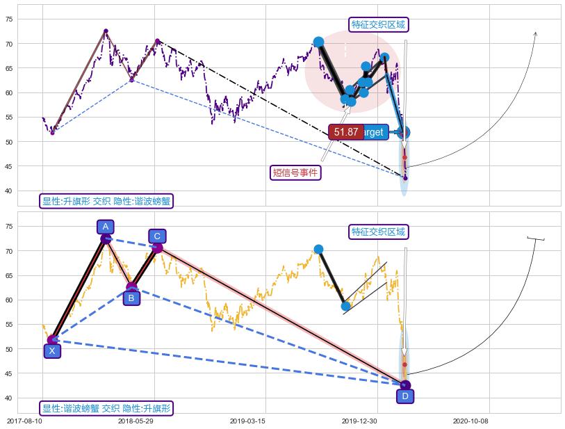 ➢ 升旗形属【短级别信号事件】谐波螃蟹属【长级别信号事件】长短周期组合信号事件, 短长事件长度比19.59%