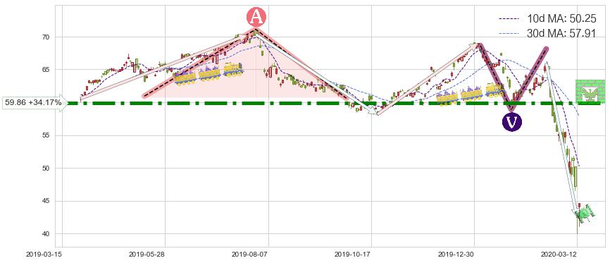 ♘ 阻力价格位59.86,可信任强度86.67%,距离最后交易2020-03-13形成的收盘价格44.62相差 +34.17%