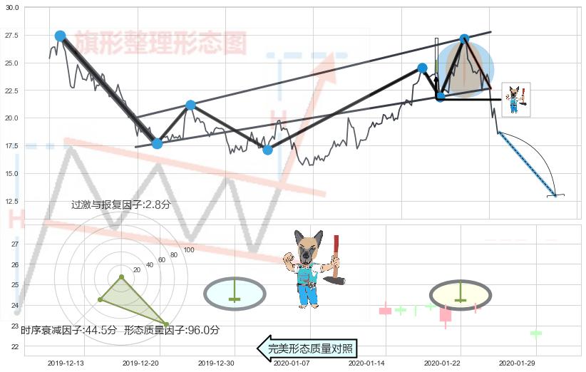 ➢ 下跌螺旋桨 🔜 升旗形支撑破位转换阻力下跌 综合量化分数:47.42 【中性】
