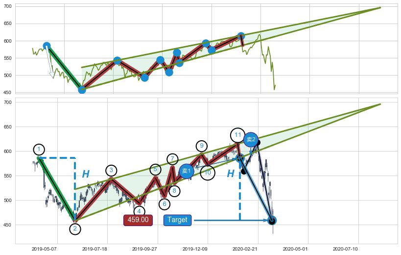 ➣ 【卖2】: 保守型 卖点→(2020-02-11: 587.82 )形成升🚩楔型突破后的【回抽确认】