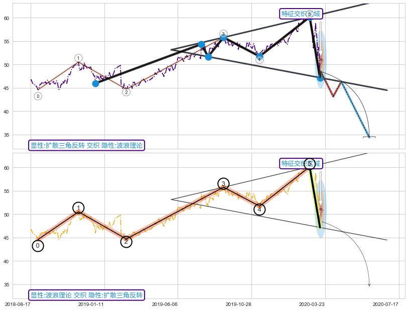➢ 扩散三角反转与波浪理论信号事件周期长度级别相同,同周期信号事件
