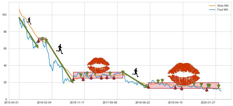 2015-12-15至2016-08-12 慢线与快线呈空头排列, 慢线与快线接触少,无缠绕