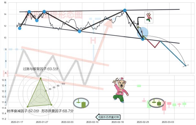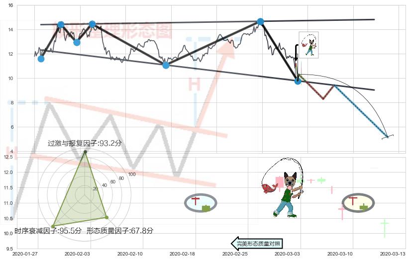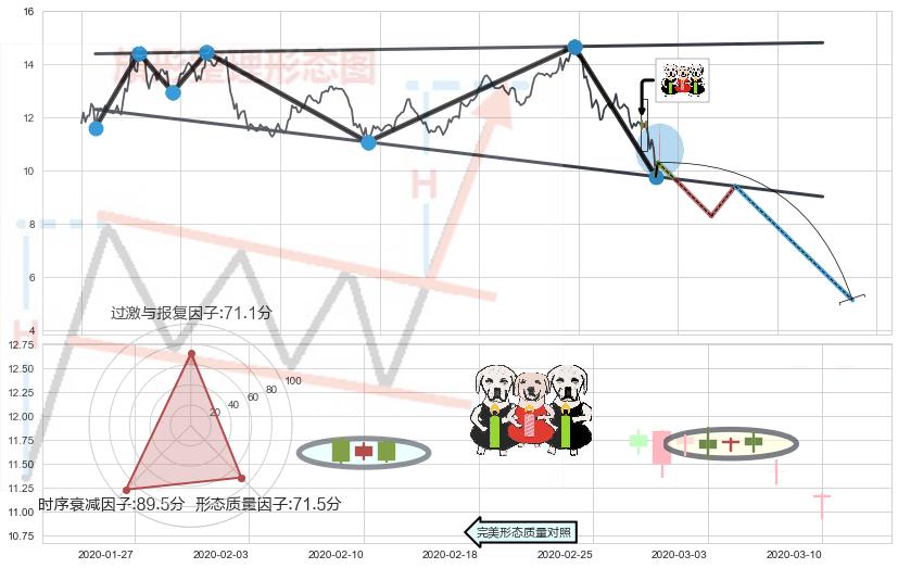 ➢ 🕰 价格走势在2020-03-10至2020-03-11期间形成吊颈线(上吊线),残存影响值:-4.36