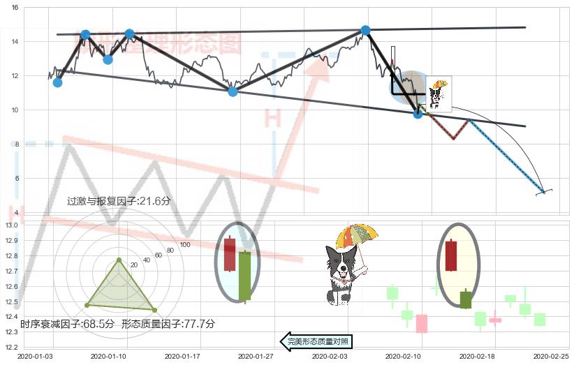➢ 射击之星形态 🔜 扩散三角反转临近支撑猜想转换阻力下跌 综合量化分数:43.07 【偏空】