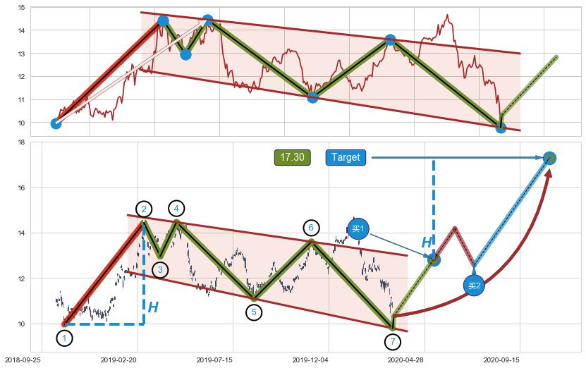 ➣ 最小中继整理涨幅→𝐇: 4.47 (𝐇旗杆的长度:旗杆起点→顶点)