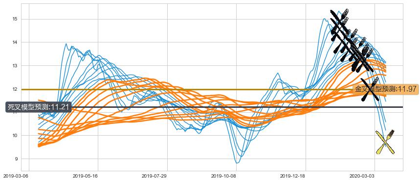 ➣ 233小时均线于(2020-02-26: 11.97)形成【死叉】基于【死叉历史模型】预测死叉后最低波谷价格: 10.31, 死叉后最低价格8.99,已经下跌超出预测最低波谷价格, 预期反弹