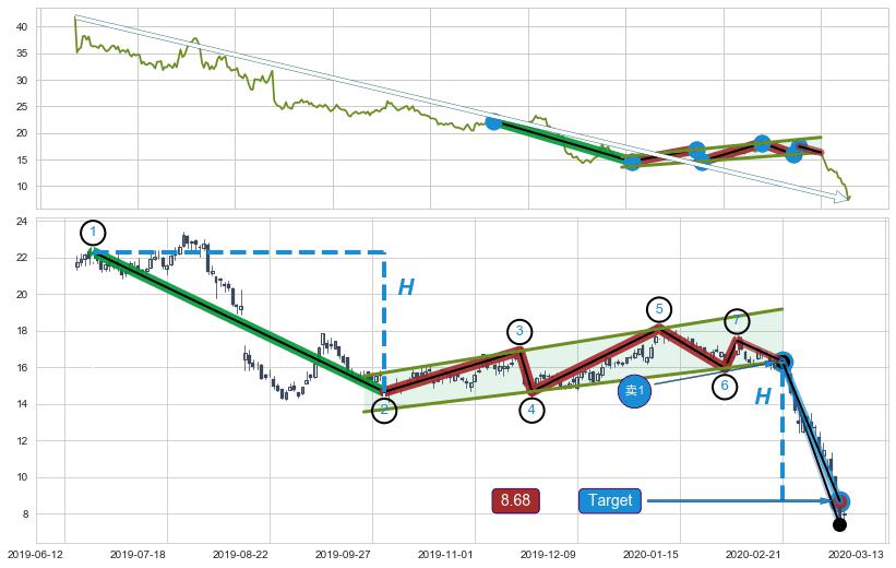 ➣ 最小中继整理跌幅→𝐇: 7.65 (𝐇旗杆的长度:旗杆起点→顶点)