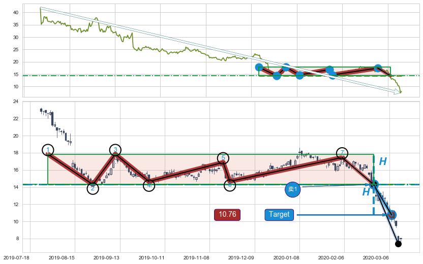 ➣ 下跌矩形整理:下跌target达成后 → 猜想下跌动能竭尽反转上涨 → 机会信号 → 大趋势均值回复