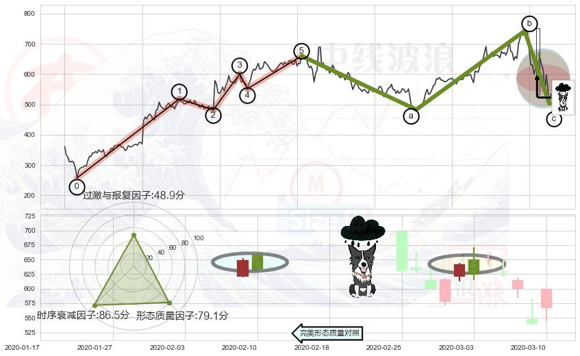 ➢ 乌云盖顶 🔜 波浪理论击穿破位C点继续下跌 综合量化分数:46.88 【中性】