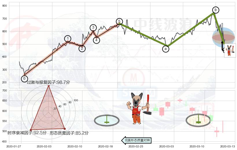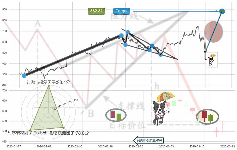 ➢ 🕰 价格走势在2020-03-06至2020-03-06期间形成单针探底(定海神针),残存影响值:4.83