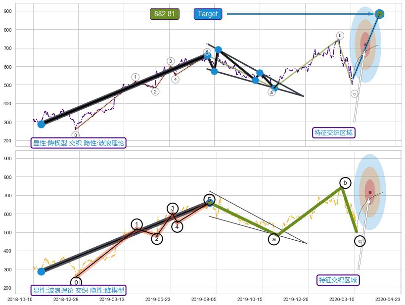 ➢ 循环浪继续向上【最低】位置(2020-12-18, 748.84),匹配聚类样本比例23.68%, 可能性概率11.45%