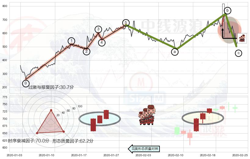 ➣ 波浪理论:猜想击穿破位c点后继续下跌 → 下跌 → 风险信号 → 小趋势跟踪