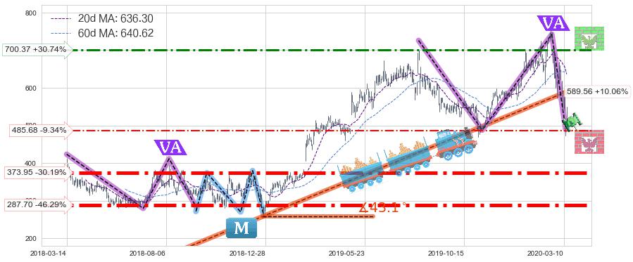 ♘ 阻力价格位700.37,可信任强度63.81%,距离最后交易2020-03-13形成的收盘价格535.69相差 +30.74%
