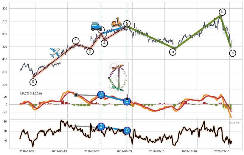 ➣ 第一, 三, 五浪上涨动能逐渐【衰弱变小】,趋势呈现不稳迹象