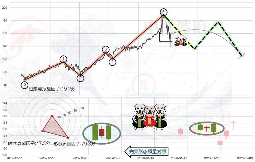 ➢ 两黑夹一红 🔜 波浪理论上涨浪:浪5回调拐点 综合量化分数:48.50 【中性】