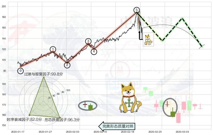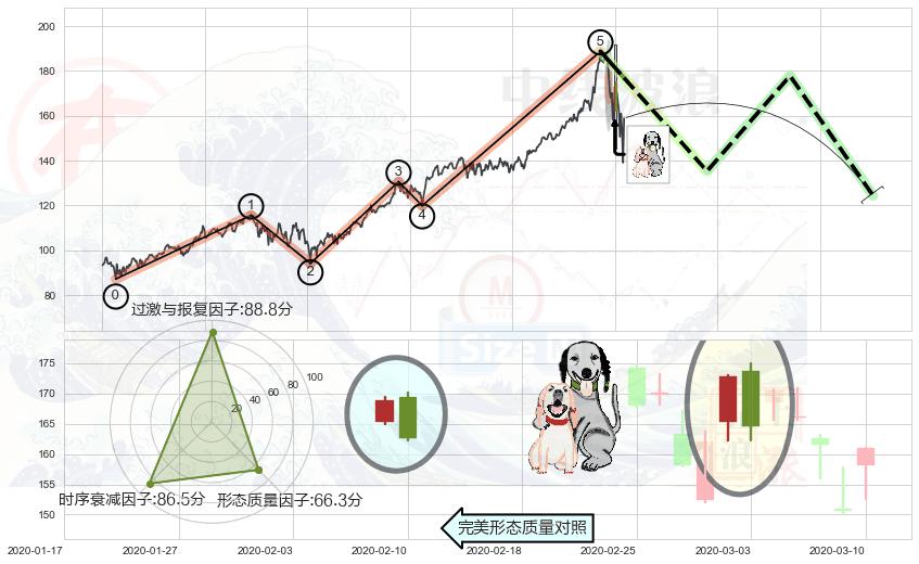 ➣ 吊颈线(上吊线) + 波浪理论上涨浪:浪5回调拐点信号叠加后【反向回撤率】中等,【看空】信号叠加【存续影响中等】