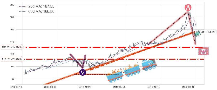 ♘ 支撑价格位131.23,可信任强度90.56%,距离最后交易2020-03-13形成的收盘价格158.83相差 -17.37%