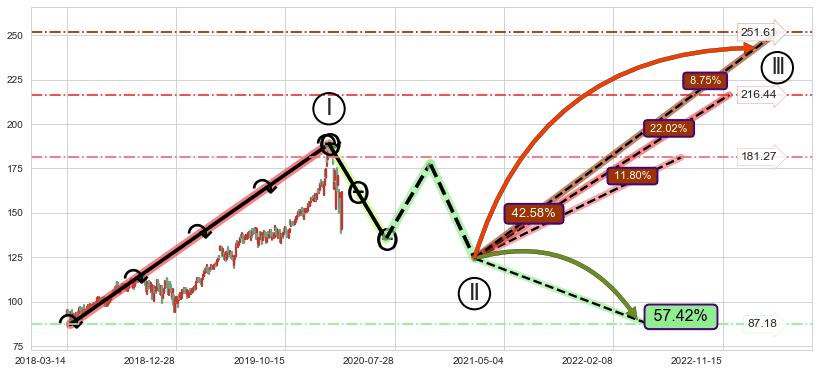 ➣ 循环浪继续向上【平均值】位置(2022-12-01, 216.44),匹配聚类样本比例51.72%, 可能性概率22.02%