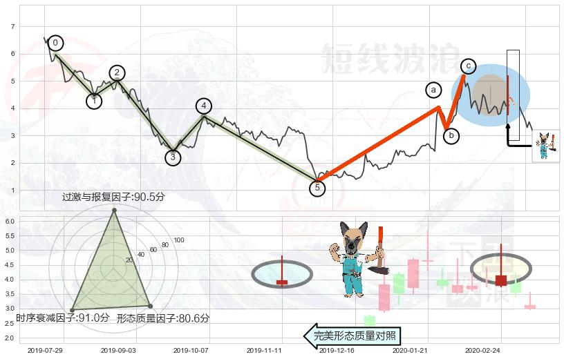 ➢ 🕰 价格走势在2020-03-06至2020-03-09期间形成吊颈线(上吊线),残存影响值:-4.78