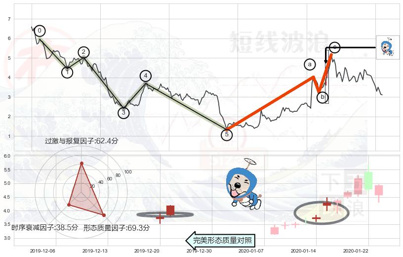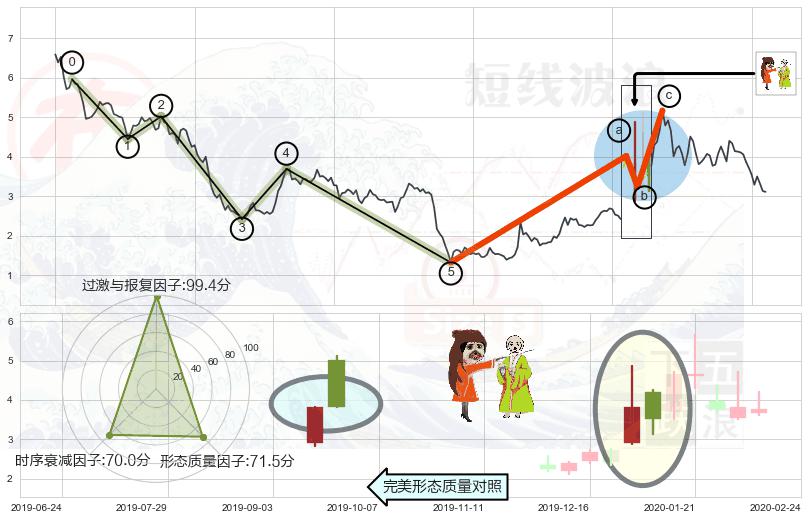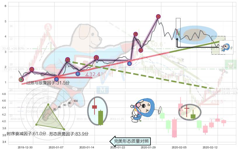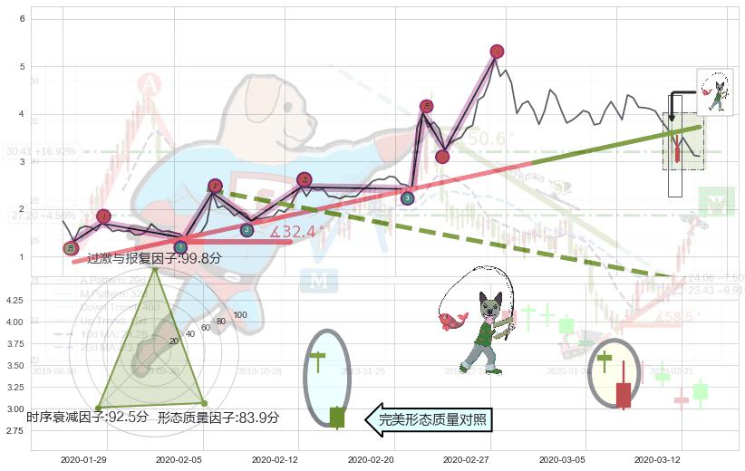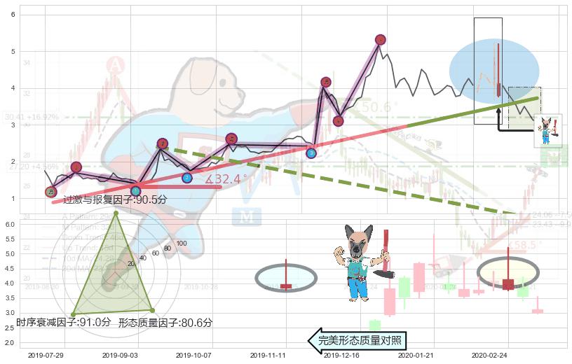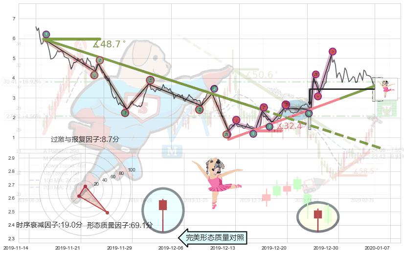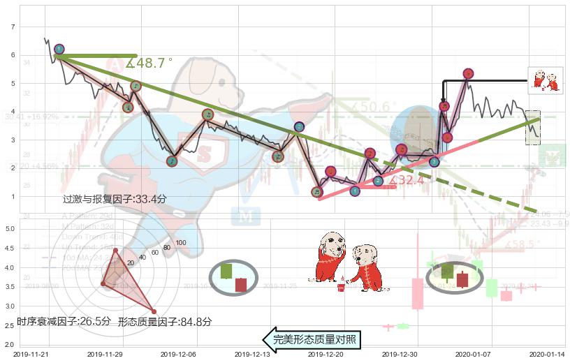 从2019-10-01至2020-01-30,共包含84个交易日,阶段股价上涨143.81%,阶段股价变动位移路程比: 1 : 3,上涨趋势角度: 32.4