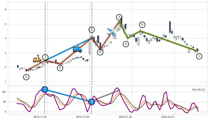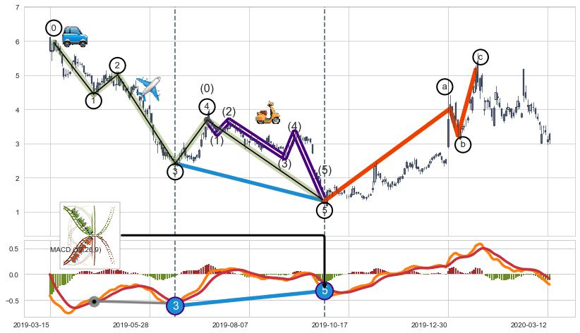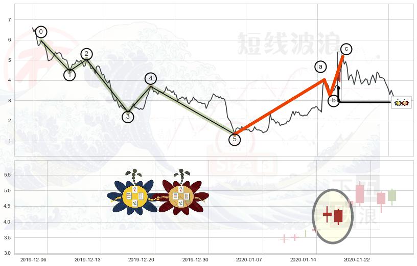 ➣ 波浪理论:猜想达到c点后小回调终止反转上涨 → 上涨 → 【拐点】临近 → 阶段均值回复结束后继续大周期趋势跟踪