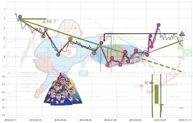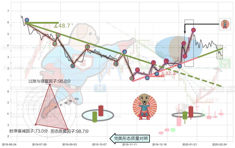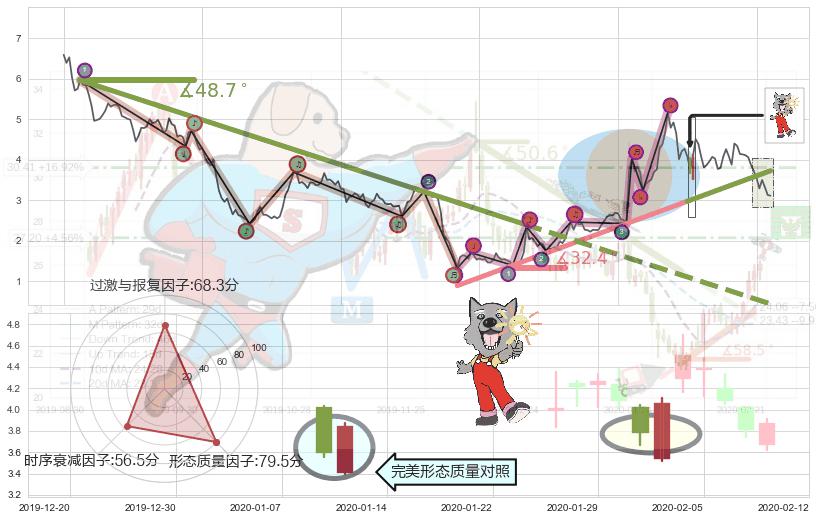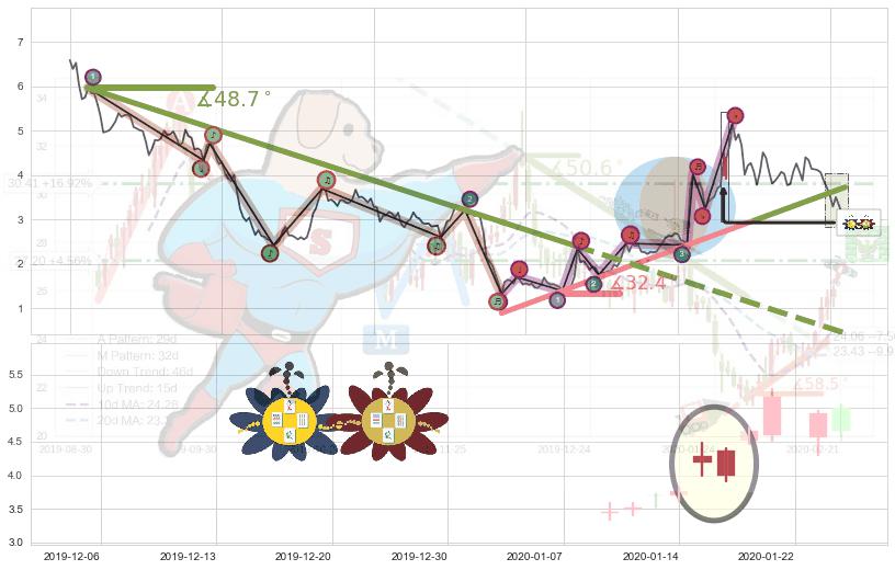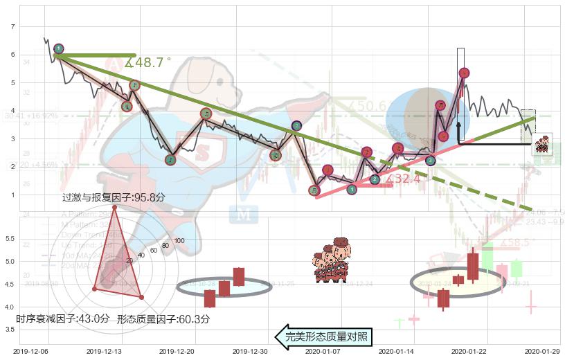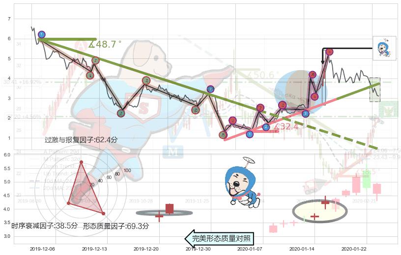 ➣ 2019-10-01-2020-01-30上升趋势存在反转[风险],其原上升趋势的支撑位(3.726)已破位[强阻力信号],原上升趋势角度: 32.4˚