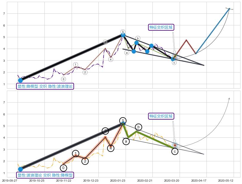 ➢ 降楔型与波浪理论信号事件周期长度级别相同,同周期信号事件