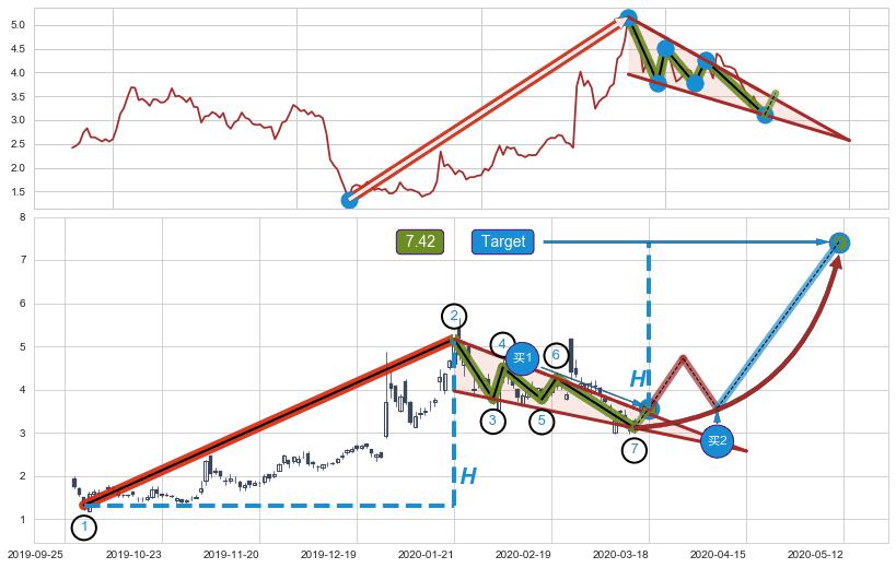 ➢ AI预测: 假定反转启动后, 第❷目标位置(2020-05-04, 4.30)