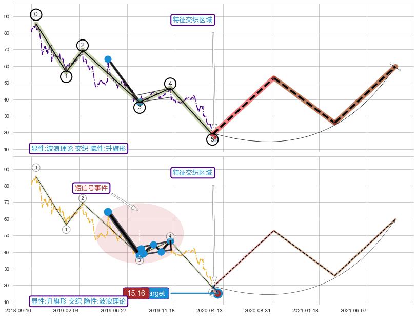 ➣ 上涨螺旋桨形态 + 波浪理论下跌浪:浪5反弹拐点信号叠加后【目标达成率】中等,【看多】信号叠加【存续影响中等】