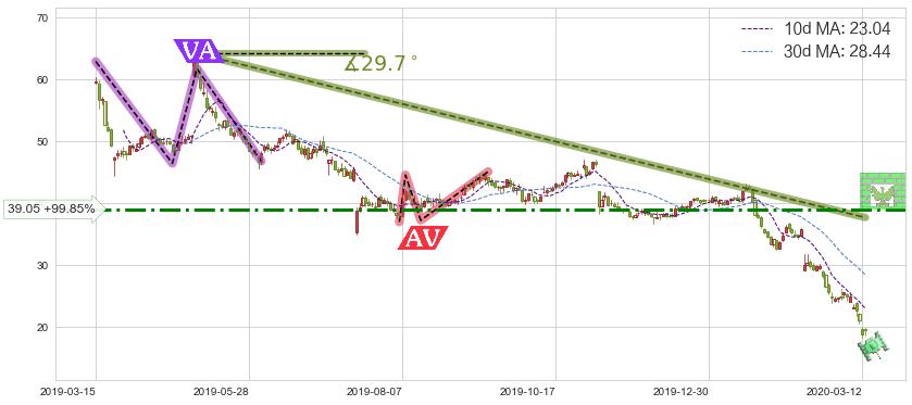 ♘ 阻力价格位39.05,可信任强度62.48%,距离最后交易2020-03-13形成的收盘价格19.54相差 +99.85%