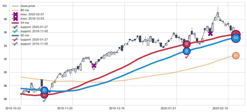 📝 多条均线形成死叉后走势最低价格达到: 74.07