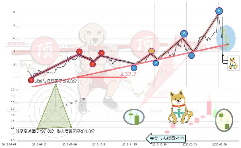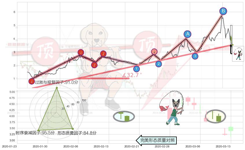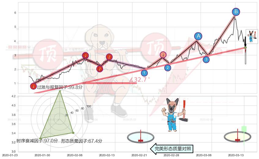➢ 🕰 价格走势在2020-03-10至2020-03-11期间形成吊颈线(上吊线),残存影响值:-4.73