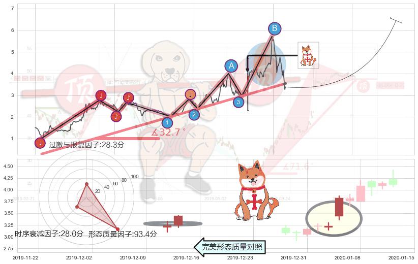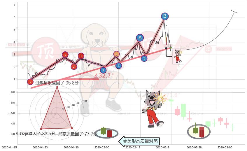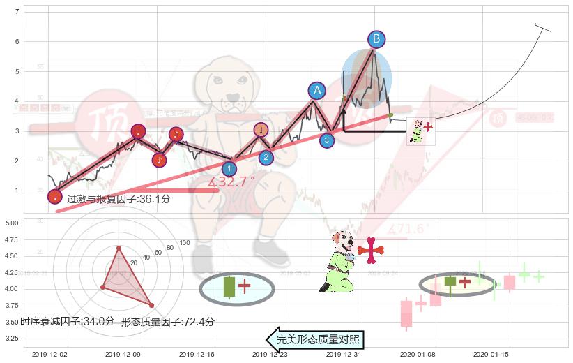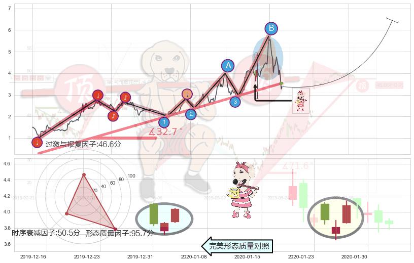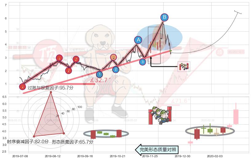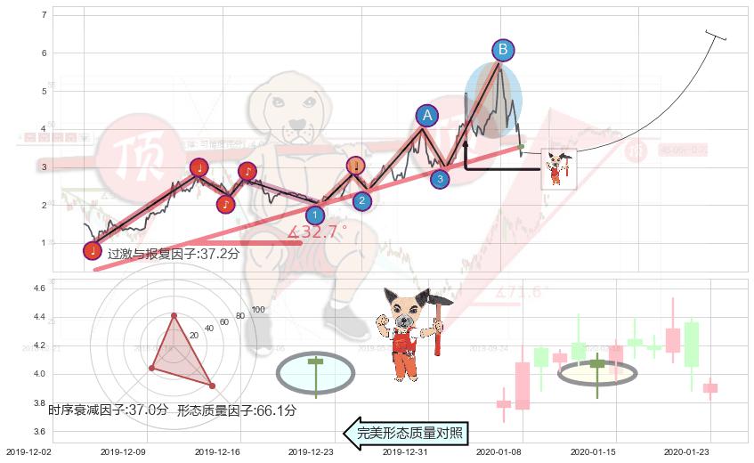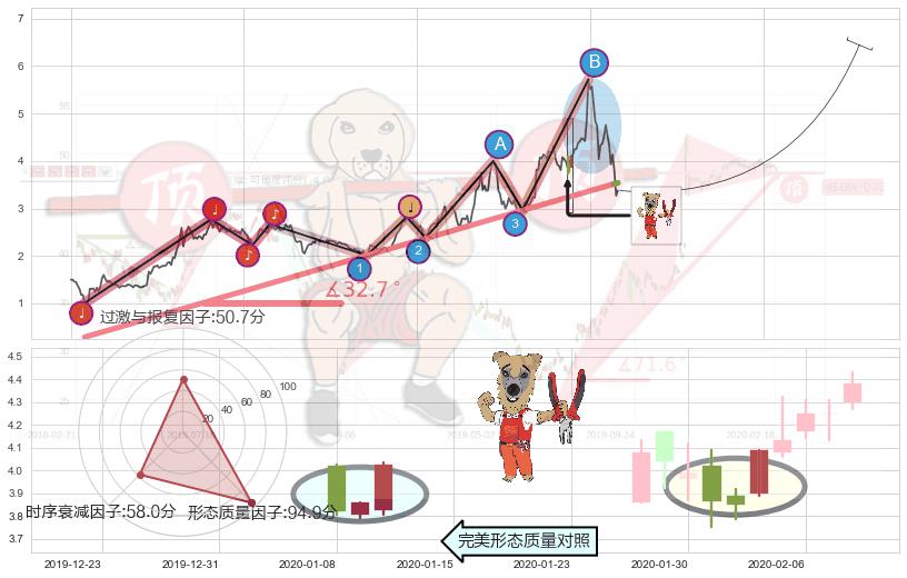 ➢ 🕰 价格走势在2020-01-06至2020-02-03期间形成上升三部曲(升势三鸦),残存影响值:2.41